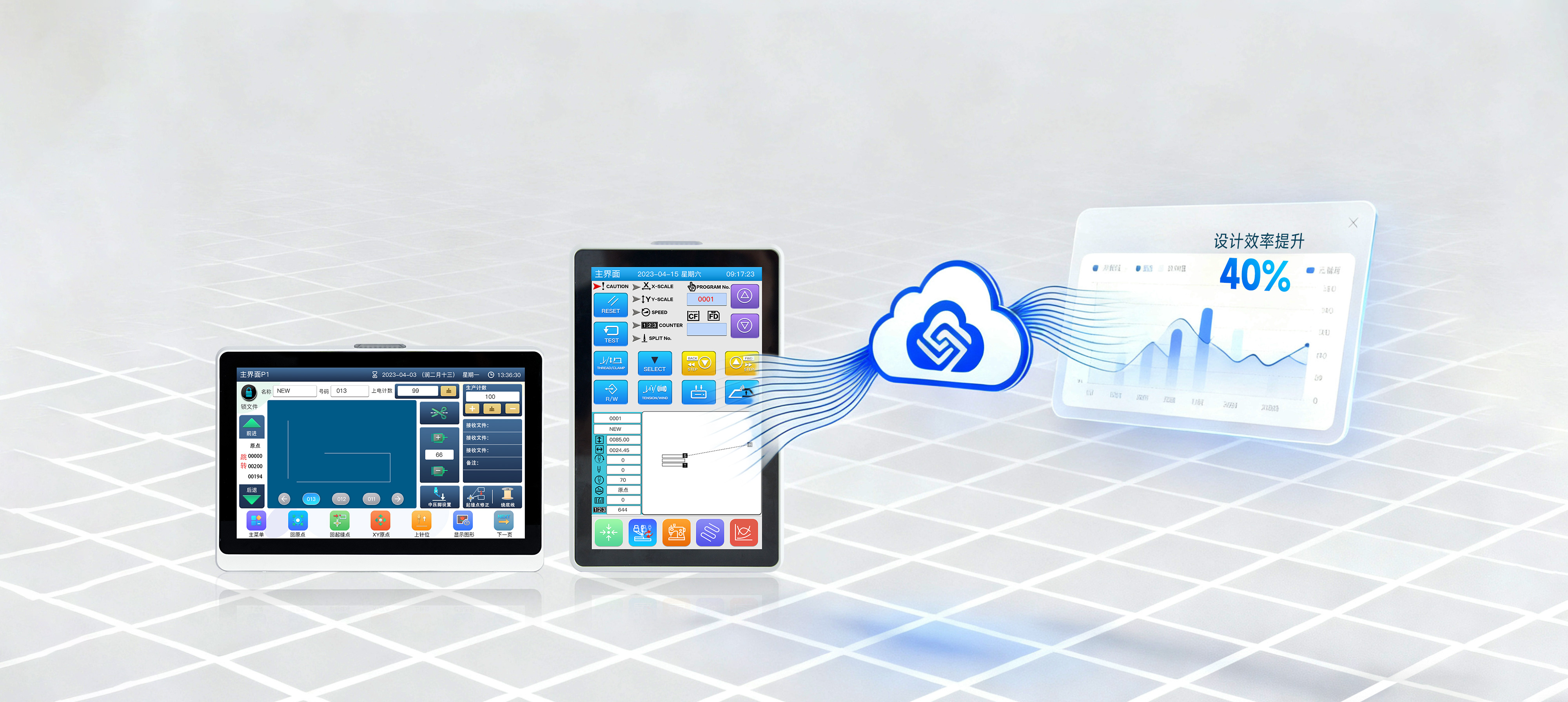 无缝对接主流电控系统,兼容RNB/DX-F/PLT等文件格式,支持多品牌云平台接入;多点触控IPS屏+多国语音导引